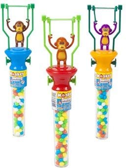 Enjoy the combo of chewing sweet candy and playing with the swinging monkey